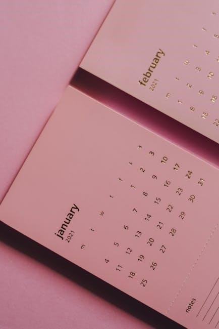 Daily planners are an essential component of the 12-Week Year Planner PDF, helping you break down your weekly goals into actionable, manageable tasks․ These planners provide a structured format to organize your day, ensuring that every moment aligns with your broader vision․ By prioritizing tasks and allocating specific time slots, you can maximize productivity and maintain focus on high-impact activities․ The daily planner includes sections for to-do lists, time blocking, and reflections, allowing you to track progress and adjust as needed․ This tool is designed to eliminate distractions and keep you committed to your objectives․ With the daily planner, you can create a clear roadmap for each day, ensuring that your actions consistently move you closer to your 12-week goals․ Regular use of the daily planner fosters discipline and accountability, helping you stay on track even when challenges arise․ By integrating daily planners into your routine, you can transform your vision into tangible results, one day at a time․