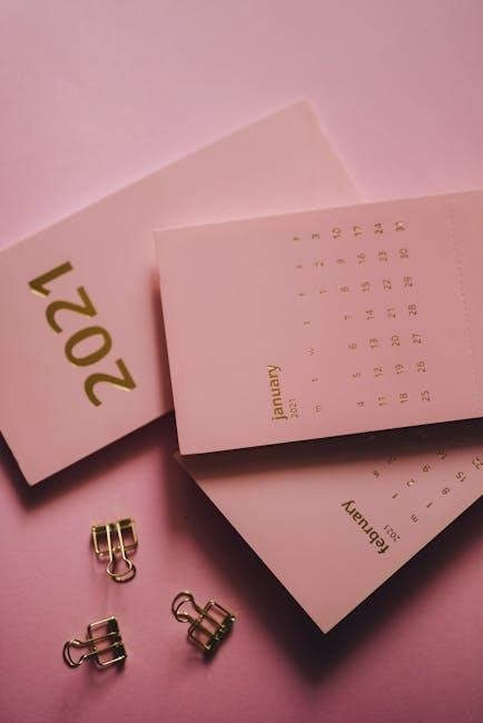 Setting clear and actionable goals is the foundation of the 12-Week Year Planner․ This process involves identifying what you want to achieve in the next 12 weeks, ensuring your goals align with your vision․ The planner provides structured templates to help you break down your objectives into manageable steps, making your vision feel attainable․ By focusing on high-impact actions, you can eliminate distractions and stay focused on what truly matters․ The system encourages you to think critically about your goals, ensuring they are specific, measurable, and time-bound․ This clarity helps you create a roadmap for success, allowing you to track progress and stay motivated․ With the 12-Week Year Planner, you can transform your aspirations into actionable steps, ensuring you make consistent progress toward your goals․ The planner’s tools, such as weekly scorecards and daily planners, further support your goal-setting process, helping you stay on track and celebrate small wins along the way․